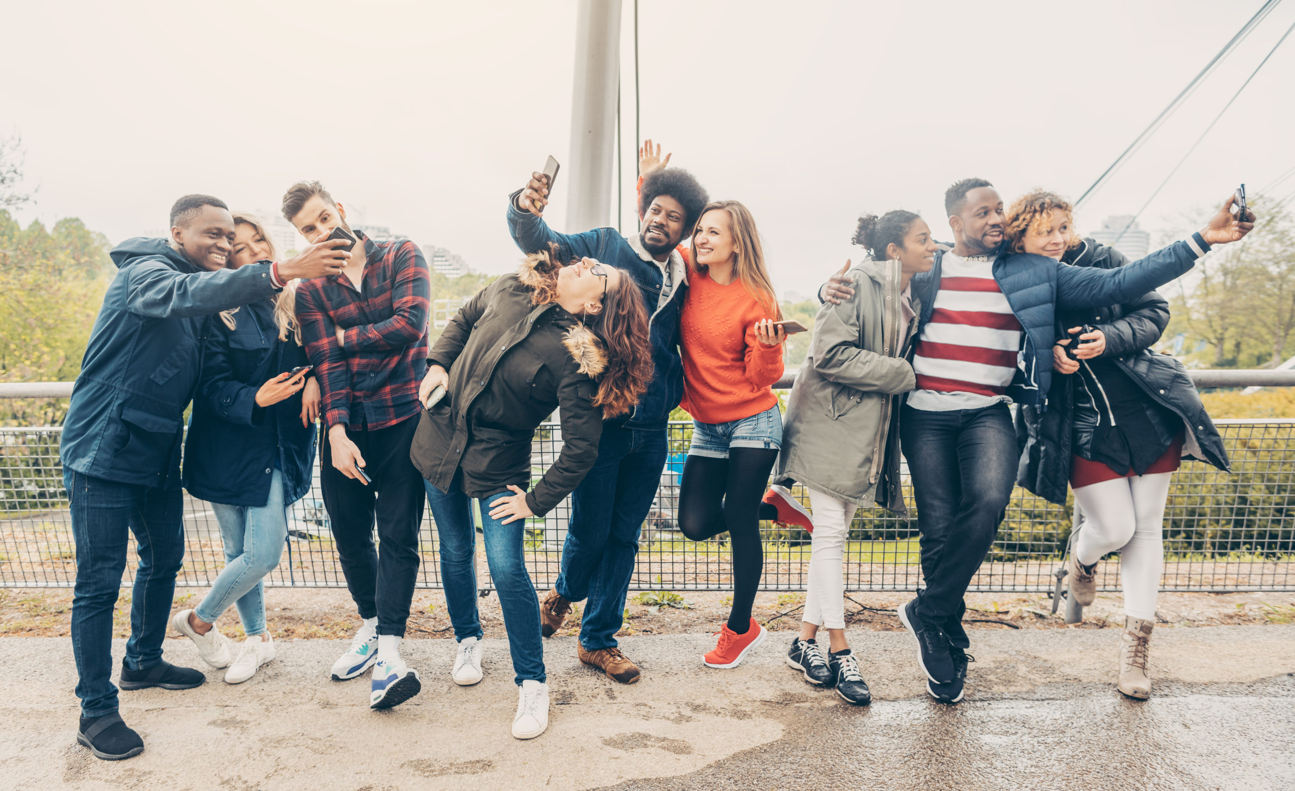 Diversity friends with phones having fun
